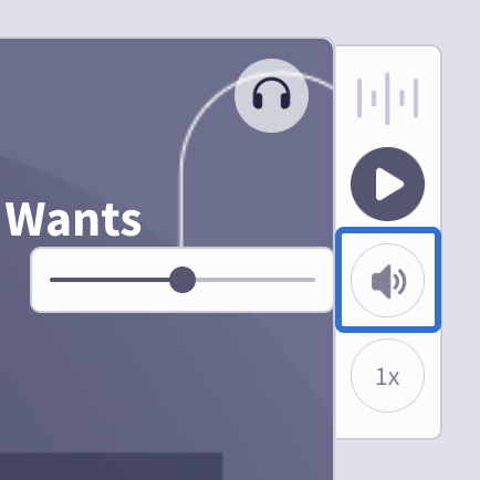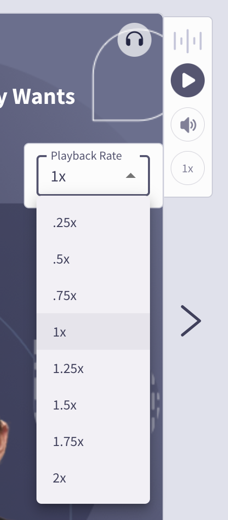 Once audio is turned on, the text on each card will automatically be read aloud. As you click the forward or back arrows to navigate through your lessons, the audio narration will continue to read the text.